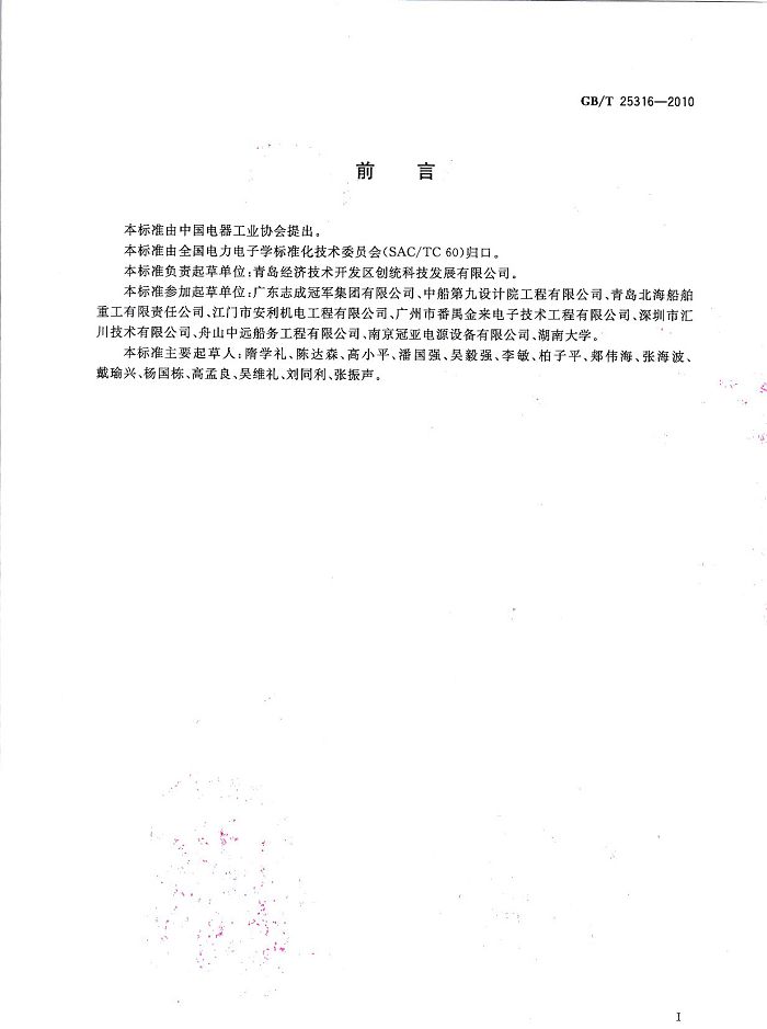 創(chuàng)統(tǒng)負(fù)責(zé)起草制訂GB/T25316《靜止式岸電裝置》